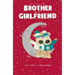 Celebrate the magic of the season with this Boofle Sitting On Moon Brother and His Girlfriend Christmas Card. Featuring the adorable Boofle character in a dreamy moonlit scene, this festive design is a heartfelt way to send warm wishes to your brother and his partner. Printed on premium-quality card stock and complete with a thoughtful Christma...