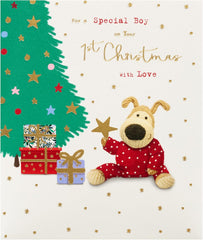 With help from adorable Boofle, wish a baby boy a very merry 1st Christmas with this cute card, finished with gold foil. Message Inside Reads: Wit...