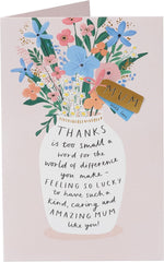 Beautiful Flower Vase Artwork – Features a charming vase filled with colourful flowers, symbolising love and happiness. Elegant & Feminine Design – Soft colours and delicate details create a graceful, timeless look. Heartfelt Message Inside – Includes a touching verse that expresses gratitude and affection. High-Quality Cardstock – Prin...