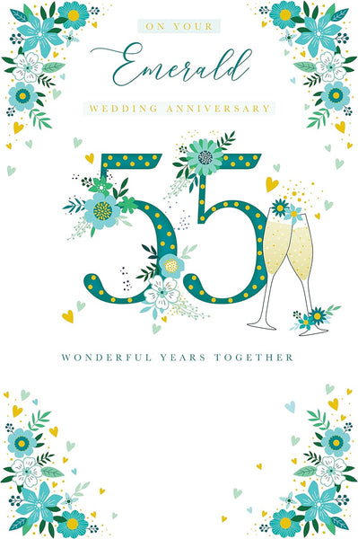 Emerald 55th Anniversary Card Champagne Foil Finish Lovely Verse