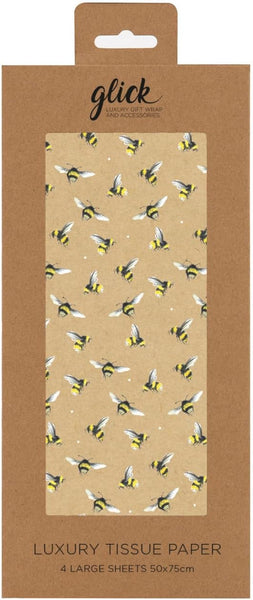 Glick Four Sheets Luxury Tissue Paper, Bees Kraft Sheets (x4), Perfect for Gift Wrapping, Art & Crafts, 750 x 500 mm, Yellow (TPC22)