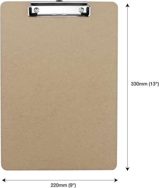 Pack of 12 durable A4-sized hardboard clipboards with smooth finish