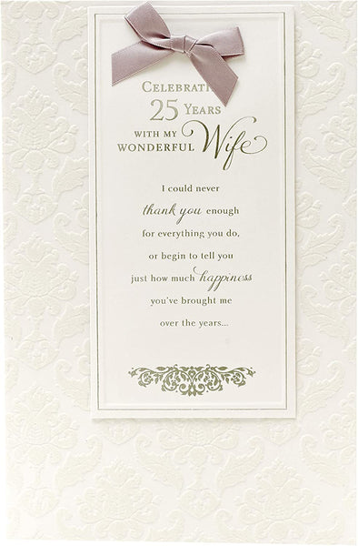 Silver 25th Wife Wedding Anniversary Card Lovely Romantic Message inside