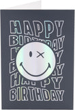 - Send wishes for a great birthday with this cool Smiley World card, featuring a smiley face design in holographic silver foil, which really stands out against the striking black background.
