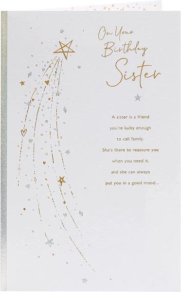 Celebrate your wonderful Sister with this beautiful Traditional Design Birthday Card. It features a classic aesthetic and is printed with a deeply Sentimental Message that perfectly expresses the unique bond, shared memories, and enduring love between siblings. This card is a heartfelt way to let your sister know how much she means to you on her special day, offering warm wishes and sincere appreciation.