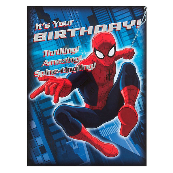 Make their birthday extra special with the spectacular Spiderman Birthday Card 'Zip Zoom Wow'. This Extra Large greeting is designed to deliver a massive punch of excitement, featuring the web-slinger in dynamic action poses, often accompanied by fun, onomatopoeic comic book sounds like 'Zip,' 'Zoom,' and 'Wow!' As an officially licensed Marvel product, this card is guaranteed to thrill any young superhero fan and is large enough to collect signatures from an entire class or family.