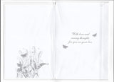 Offer heartfelt comfort and support during a time of loss with this gentle Sympathy Card. The design features serene imagery of delicate Butterflies—symbols of the soul, hope, and transformation—alongside the tranquil beauty of Lily of the Valley, which traditionally signifies a return to happiness. This card provides a tender and respectful way to express your condolences and let someone know they are in your thoughts.