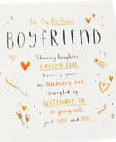 - Celebrate all the things you share with your brilliant boyfriend with this romantic Valentine's Day card, printed on premium quality board with gold foil details.