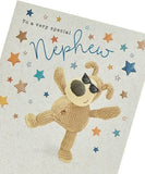 Celebrate your wonderful Nephew with this adorable Very Special Nephew Boofle Birthday Card! Featuring the beloved Boofle Bear, famous for his endearing patches and cozy, Cute appeal, this card is the perfect way for an auntie or uncle to express their deep affection. It conveys a genuinely Sentimental message of pride and love, acknowledging just how Special he is. This charming Boofle Card is a beautiful, cuddly Keepsake that he'll be delighted to receive on his birthday!