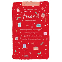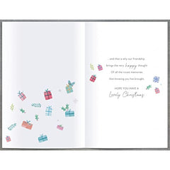 You are viewing: A Christmas greeting card for a Friend Occasion: Perfect for Christmas Message Inside: …and that is why our friendship brings the very happy thought of all the nicest memories that knowing you has brought. Hope you have a Lovely Christmas Details: A traditional Christmas greeting card from the popular Helen Steiner Rice range i...