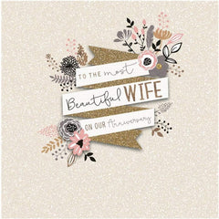 Celebrate your love and devotion with this heartfelt To The Most Beautiful Wife On Our Anniversary Card! This greeting uses powerful language to co...