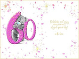 - FEATURING ICONIC TATTY TEDDY - The photo-real image shows Tatty Teddy peeking out from the number 60, with a backdrop of confetti and delicate gold flitter to add extra sparkle