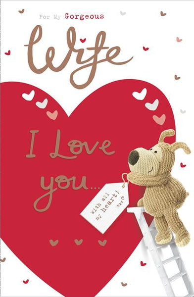 - Adorable Boofle Illustration – Features the popular and much-loved Boofle character standing on a ladder in a sweet, romantic pose.