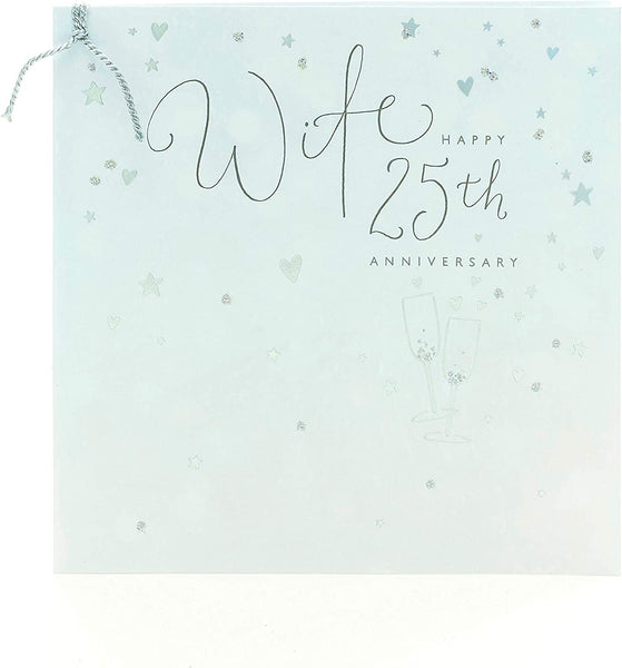Tags: 25 years wishes, couple celebration, luxury stationery, romantic card, sentimental wife card, silver anniversary, sparkling hearts stars, wife 25th anniversary card