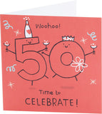 • Celebrate their milestone birthday with this fun and bright 50th card, featuring number characters and shiny black line details.