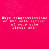 - Message On Back Reads: Huge congratulations on the safe arrival of your cute little one!